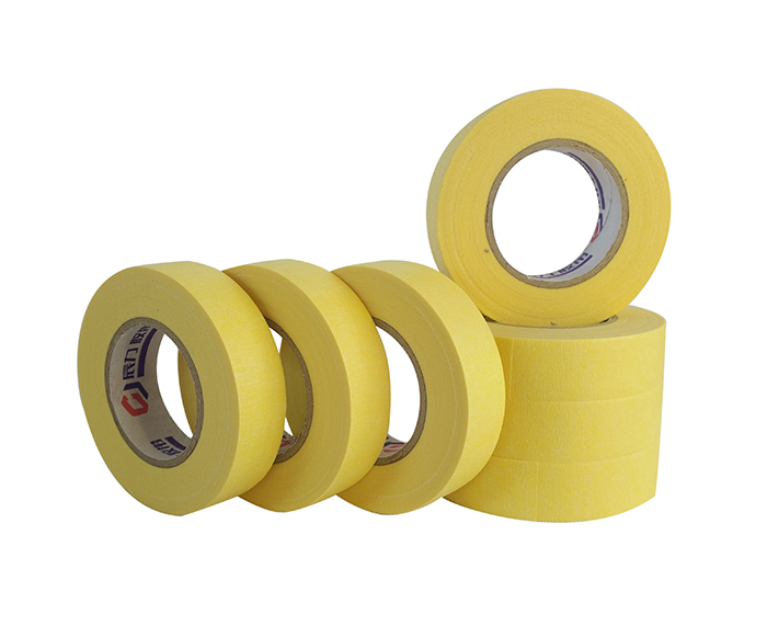 以美紋紙和壓敏膠水為主要原料,在美紋紙上塗覆壓敏膠粘劑,另一麵塗以防(fáng)粘材料而製成的卷狀膠粘帶,具有耐高溫、抗化學溶劑佳、高粘著力、柔軟服貼和(hé)再撕不留(liú)殘膠等特性。